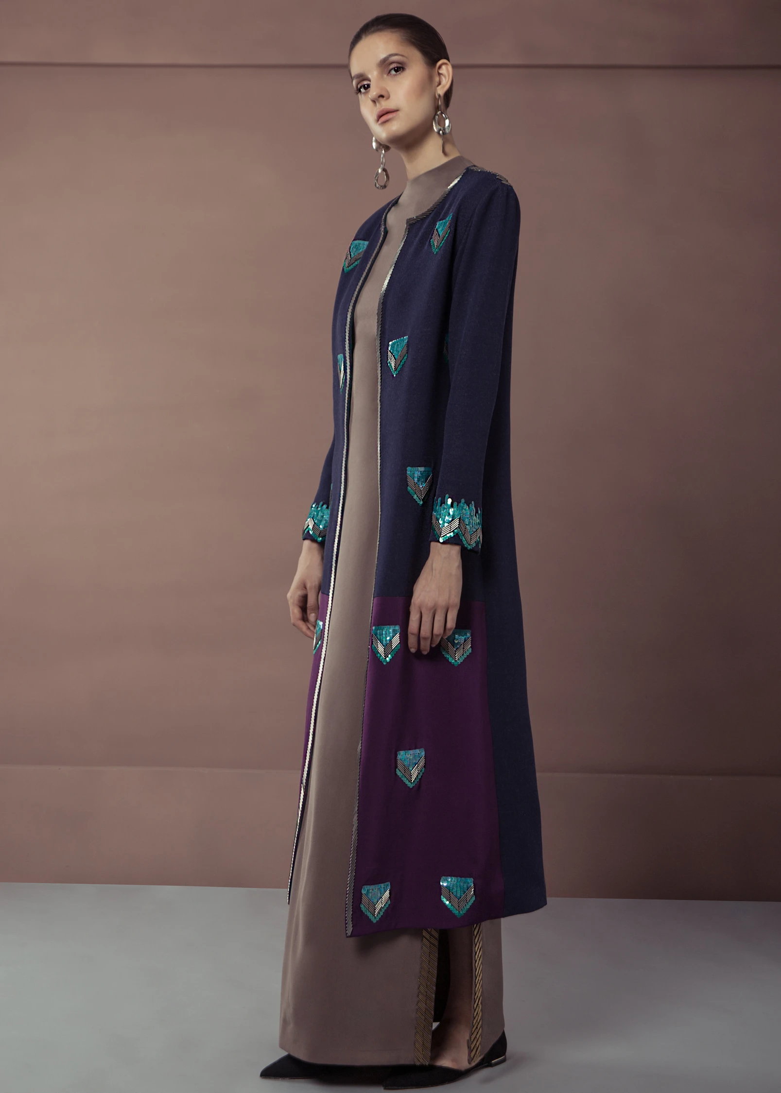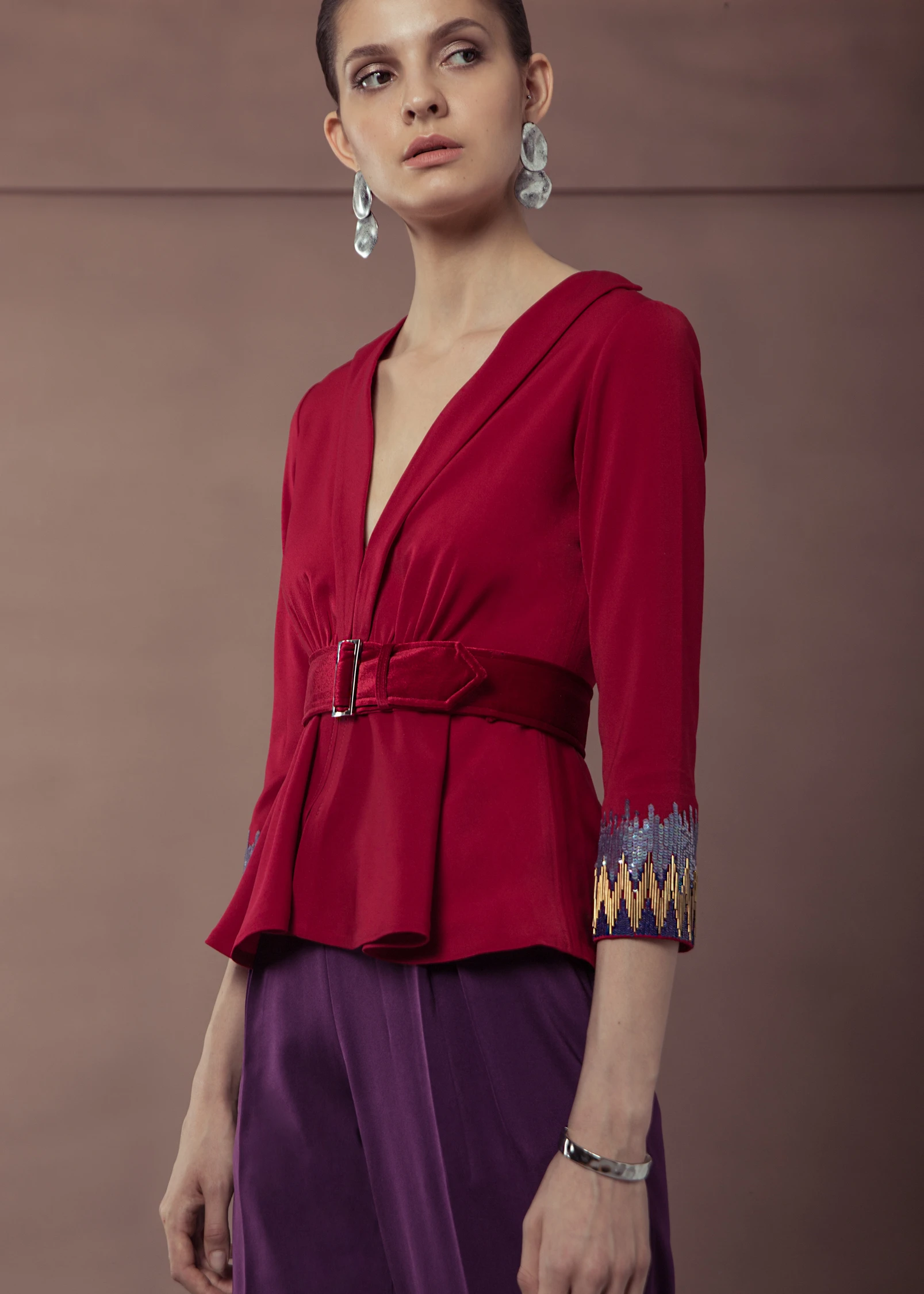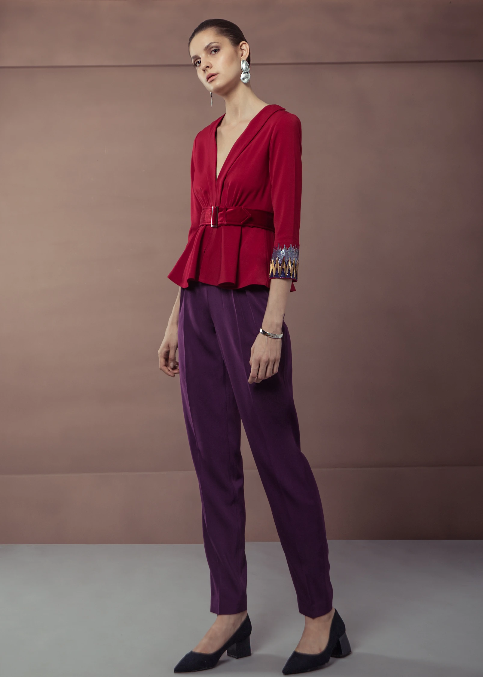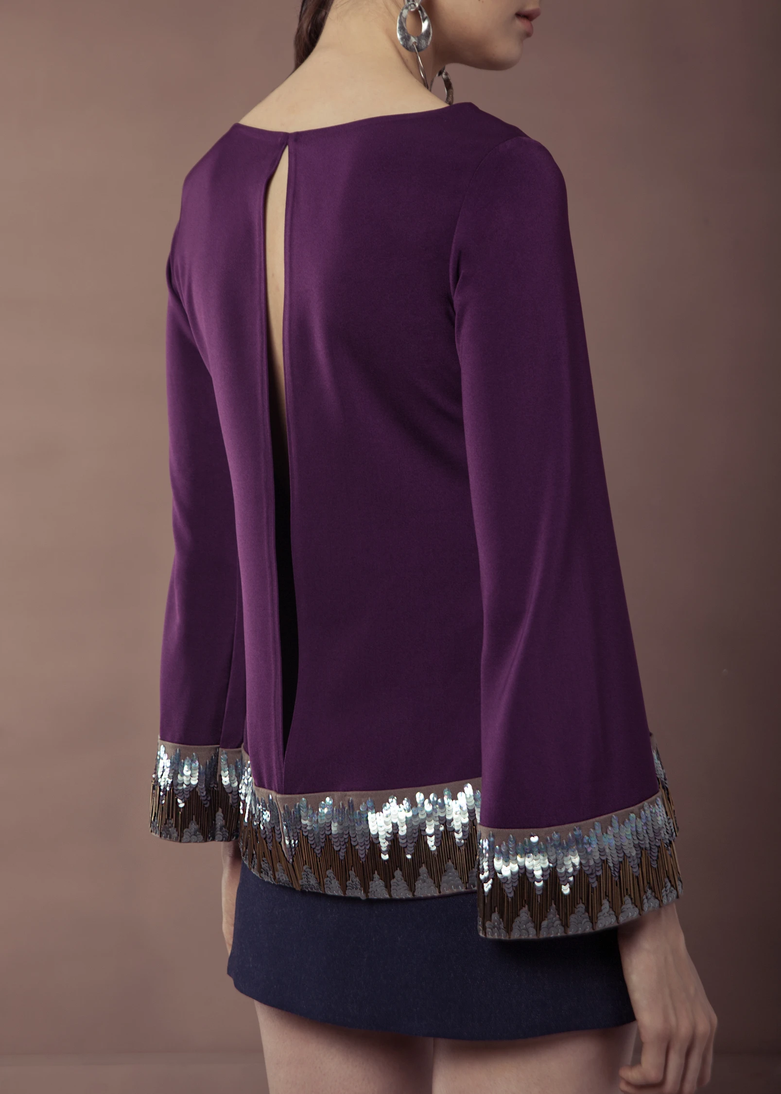 Featuring a denim crop jacket with sequin embellishemnt